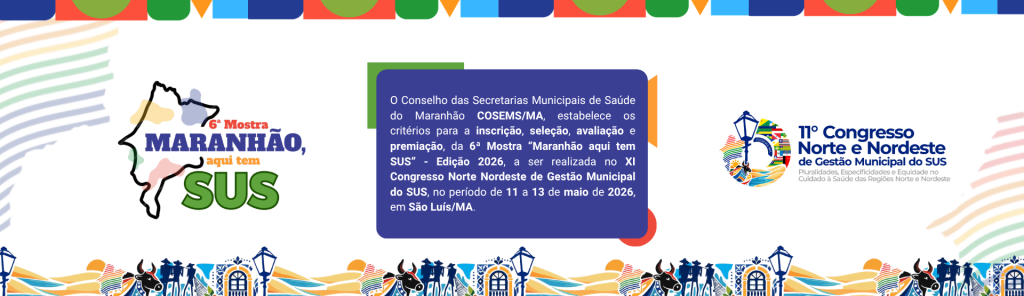 O Conselho das Secretarias Municipais de Saúde do Maranhão COSEMS/MA, estabelece os critérios para a inscrição, seleção, avaliação e premiação, da 6ª Mostra “Maranhão aqui tem SUS” – Edição 2026, […]